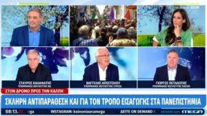 Τώρα όσο αφορά για τα θέματα της παιδείας. Παρουσιάζουμε ένα συγκεκριμένο πρόγραμμα στους πολίτες κι αυτό θα υπηρετήσουμε. Είναι η δέσμευσή μας να περνάνε τα παιδιά στα πανεπιστήμια, χωρίς ελάχιστη βάση εισαγωγής. Να υπάρχει η δυνατότητα στους νέους να μπορούν να σπουδάσουν. Καταργείς τις πανελλήνιες σημαίνει ότι τα ισοπεδώνεις όλα. Εδώ μιλάμε για μία διαδικασία η οποία πολύ απλά δίνει τη δυνατότητα σε όλους, να μην αποκλείονται της τριτοβάθμιας εκπαίδευσης. Κάνετε διαφορετική ερμηνεία. Όταν θέλει κάποιος να μπει στο πανεπιστήμιο κάνει μια προσπάθεια, δε δίνει λευκή κόλλα. Δε λέμε ότι μπορεί ένας με χαμηλή βαθμολογία να πάρει τη θέση από έναν άριστο. Λέμε να σπουδάσουν όλα τα παιδιά. Να προσπαθήσουν να μπουν στην ιατρική. Αν δε μπορέσουν να μπουν να πάνε να σπουδάσουν σε άλλη σχολή που τα ίδια θα θελήσουν. Η σπουδή είναι κάτι που πρέπει ο κάθε πολίτης να έχει τη δυνατότητα. Δεν είναι πρώτη φορά που λέμε για το θέμα της βάσης, πάντα το είχαμε στο πρόγραμμά μας.