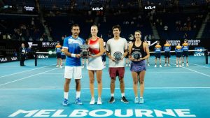 Ivan Dodig (Croatia), Kristina Mladenovic (France), Jason Kuble (Australia και Jaimee Fourlis (Australia) κατά τη διάρκεια της απονομής. Φώτο: ΑΑΡ via Rob Prange / IPA/Sipa USA