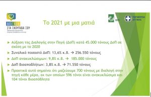 - Αύξηση της Διαλογής στην Πηγή (ΔσΠ) κατά 45.000 τόνους ΔσΠ σε σχέση µε το 2020