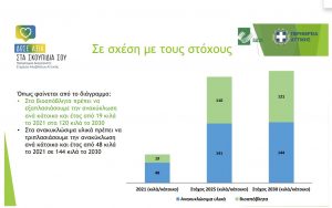 - Ο στόχος της ανακύκλωσης είναι 55% για το 2025 και 10% υπόλειμμα ταφής για το 2030.