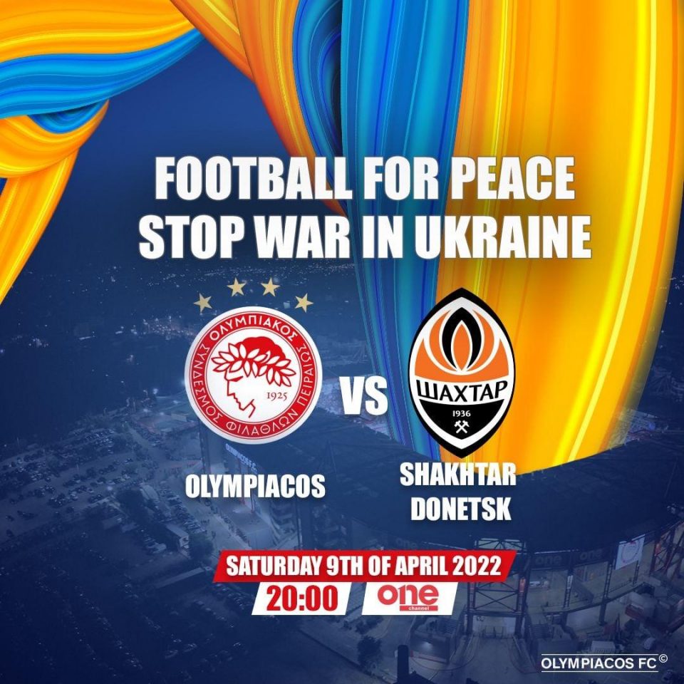 Ο Δήμος Πειραιά υποστηρίζει τον φιλικό αγώνα που διοργανώνει ο Ολυμπιακός με την ουκρανική Σαχτάρ Ντόνετσκ, το Σάββατο 9 Απριλίου, στις 20:00, στο γήπεδο «Γ. Καραϊσκάκης», για την Ειρήνη και τον τερματισμό του πολέμου στην Ουκρανία.