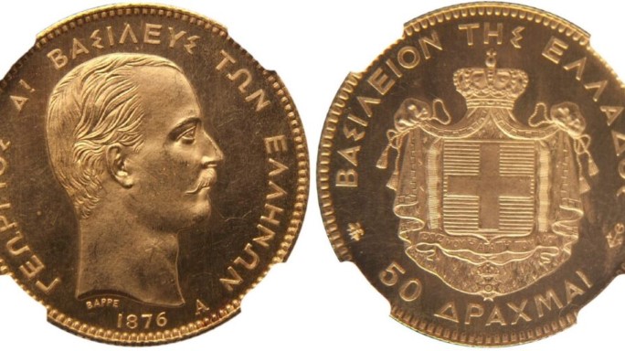 Μια ιστορική, για τα ελληνικά δεδομένα, δημοπρασία έλαβε χώρα στην Ελβετία, στις 17 Νοεμβρίου, στην οποία μεταξύ άλλων δημοπρατήθηκαν και ελληνικά σπάνια νομίσματα. Το νόμισμα που «έκλεψε την παράσταση» ήταν αυτό των 50 δραχμών του 1876. Το συγκεκριμένο ελληνικό νόμισμα κόπηκε το 1876 στο νομισματοκοπείο του Παρισιού σε 182 αντίτυπα. Ήταν τότε μία πρόθεση του Ελληνικού κράτους να προβάλει εκσυγχρονισμό και να δείξει πως ακολουθούσε τα ευρωπαϊκά πρότυπα κοπής μεγάλων χρυσών νομισμάτων.