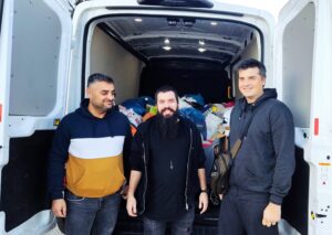 1) Ο κ. Κωνσταντίνος Κοντογιάννης με τον εθελοντή της Οργάνωσης Σταμάτη Μαύρο στην παράδοση των ρούχων και παιχνιδιών μαζί με προσωπικό της δομής.