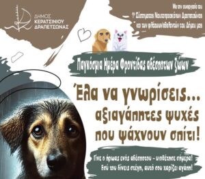 Στην επίσημη ιστοσελίδα του Δήμου μας https://keratsini-drapetsona.gr/…/pets-keratsini… μπορείτε να ενημερώνεστε καθημερινά για τις δράσεις και τις υιοθεσίες των αδέσποτων ζώων.