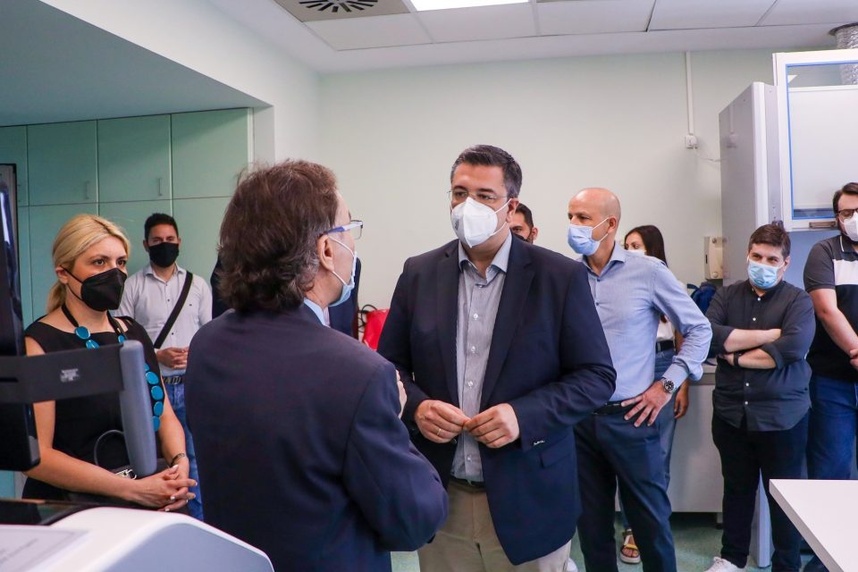 Ο κ. Τζιτζικώστας, συνοδευόμενος από την Αντιπεριφερειάρχη Δημόσιας Υγείας και Κοινωνικής Αλληλεγγύης Μελίνα Δερμεντζοπούλου, ενημερώθηκε από τον επικεφαλής της ομάδας επιστημόνων του Εργαστηρίου, καθηγητή, Νικόλαο Ράικο, για τη λειτουργία του σύγχρονου φασματογράφου, με τον οποίο εξόπλισε το Εργαστήριο η Περιφέρεια Κεντρικής Μακεδονίας.
