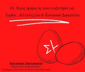 ΜΑΖΙ ΜΕ ΤΗΝ ΕΥΧΗ & ΤΟ ΠΑΣΧΑΛΙΝΟ ΑΥΓΟ ΕΝΑ ΣΥΓΚΗΝΗΤΙΚΟ ΚΕΙΜΕΝΟ ΜΑΣ ΕΣΤΕΙΛΕ Ο ΠΡΩΗΝ ΑΝΑΠΛΗΡΩΤΗΣ ΥΠΟΥΡΓΟΣ ΝΑΥΤΙΛΙΑΣ κ. ΝΕΚΤΑΡΙΟΣ ΣΑΝΤΟΡΙΝΙΟΣ ΜΕ ΣΥΝΘΗΜΑ ΕΠΙΚΡΟΤΗΘΗΚΕ ΑΠΟ ΔΩΔΕΚΑΝΗΣΙΟΥΣ ΠΟΥ ΒΡΙΣΚΟΝΤΑΙ ΣΠΑΡΜΕΝΟΙ Σ ΟΛΗ ΤΗΝ ΕΥΡΩΠΗ & ΤΗ ΓΗΟΙ ΑΓΙΕΣ ΗΜΕΡΕΣ ΑΣ ΕΙΝΑΙ ΑΦΕΤΗΡΙΑ ΕΙΡΗΝΗ ΑΛΛΗΛΕΓΓΥΗ & ΚΟΙΝΩΝΙΚΗ ΔΙΚΑΙΟΣΥΝΗ