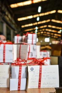 Τα μικρά παιδιά διακόσμησαν τον κήπο του Γηροκομείου με χριστουγεννιάτικα στολίδια, τα οποία είχαν φτιάξει στους παιδικούς σταθμούς, προσέφεραν κουραμπιέδες και μελομακάρονα, που ετοίμασαν με τη βοήθεια των εκπαιδευτικών, αλλά και όμορφα δώρα: Σε κάθε ένοικο του Γηροκομείου, από μία ζεστή κουβέρτα για τα πόδια.