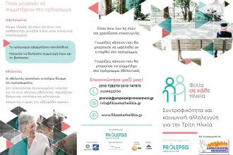 Για περισσότερες πληροφορίες αναφορικά με το πρόγραμμα Φιλία σε κάθε Ηλικία μπορείτε να επισκεφθείτε την ιστοσελίδα https://filiasekatheilikia.gr.