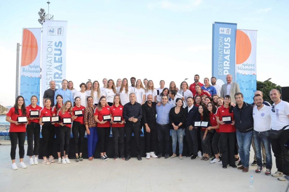 Σε μία ειδική τιμητική εκδήλωση στο δημοτικό κολυμβητήριο «Ανδρέας Γαρύφαλλος» στα Βοτσαλάκια με φόντο τη θάλασσα, ο Δήμος Πειραιά βράβευσε χθες τις γυναικείες ομάδες υδατοσφαίρισης του Ολυμπιακού Σ.Φ.Π. και του Εθνικού Ο.Φ.Π.Φ. για τις σημαντικές ευρωπαϊκές τους κατακτήσεις.