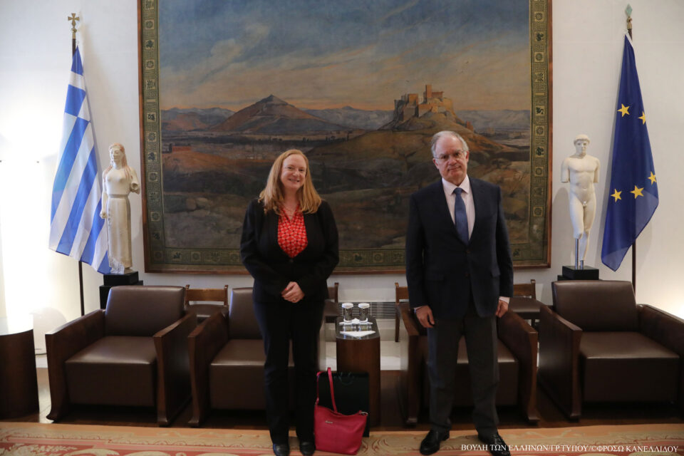 Ο Πρόεδρος της Βουλής των Ελλήνων, κ. Κωνσταντίνος Τασούλας, συναντήθηκε σήμερα στο Κοινοβούλιο με την Πρέσβη της Αυστραλίας στην Ελλάδα, κ. Alison Duncan.