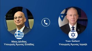 Είχα σήμερα τηλεφωνική επικοινωνία με τον Υπουργό Άμυνας του Ισραήλ Yoav Gallant, ο οποίος με συνεχάρη για την ανάληψη των καθηκόντων μου. Ο κ. Gallant με προσκάλεσε να επισκεφθώ επίσημα το Ισραήλ, όπου και συμφωνήθηκε να πραγματοποιήσω επίσκεψη το συντομότερο δυνατό.Κατά την συνομιλία μας υπογραμμίστηκε η σημασία της στρατηγικής αμυντικής σχέσεως