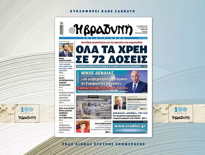 Διαβάστε μεταξύ άλλων στη «Βραδυνή της Κυριακής» που κυκλοφόρησε στις 06/11/2021 – Δείτε το πρωτοσέλιδο:
