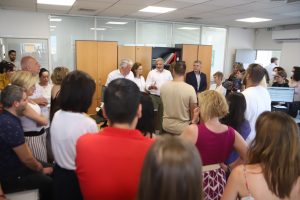 Ο Γ. Πατούλης είχε την ευκαιρία να συναντηθεί και με το στελεχιακό δυναμικό του Β ΚΕΔΑΣΥ Αθηνών το οποίο φιλοξενείται σε κτιριακές υποδομές το λειτουργικό κόστος των οποίων καλύπτεται από πόρους της Περιφέρειας Αττικής. Στο σημείο τον υποδέχθηκε η προϊσταμένη Ιωάννα Χατζόπουλου. Ο Γ. Πατούλης συνομίλησε με το προσωπικό και ξεναγήθηκε στους χώρους. Στη συνέχεια συνεχάρη το προσωπικό για το πολύτιμο έργο που προσφέρει. Η κ. Χατζόπουλου ευχαρίστησε τον Περιφερειάρχη και τα στελέχη της Περιφέρειας καθώς με τη συμβολή τους δόθηκε λύση στο πολυετές πρόβλημα στέγασης τους. Οι υπηρεσίες 2ου ΚΕΔΑΣΥ Β Αθήνας για περίπου 6 χρόνια παρέμεναν σε ISOBOX στον προαύλιο χώρο ενός σχολείου. Η κ. Χατζοπούλου τόνισε ότι αν καιχρειάζονται ακόμα μεγαλύτερο χώρο, έγινε ένα πρώτο σημαντικό βήμα καθώς ήταν άστεγοι και κάποιες υπηρεσίες φιλοξενούνταν σε κοντέινερ. «Τώρα είμαστε στεγασμένοι αξιοπρεπώς και κάνουμε καλύτερα τη δουλειά μας» υπογράμμισε.